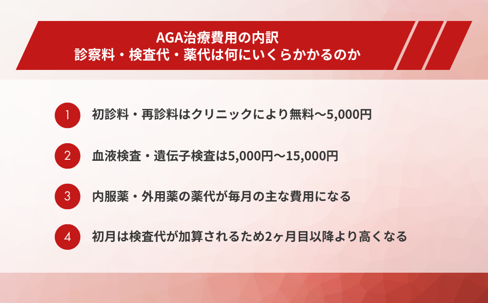 AGA治療費用の内訳|診察料・検査代・薬代は何にいくらかかるのか