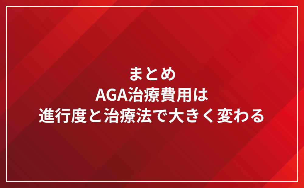 まとめ|AGA治療費用は進行度と治療法で大きく変わる