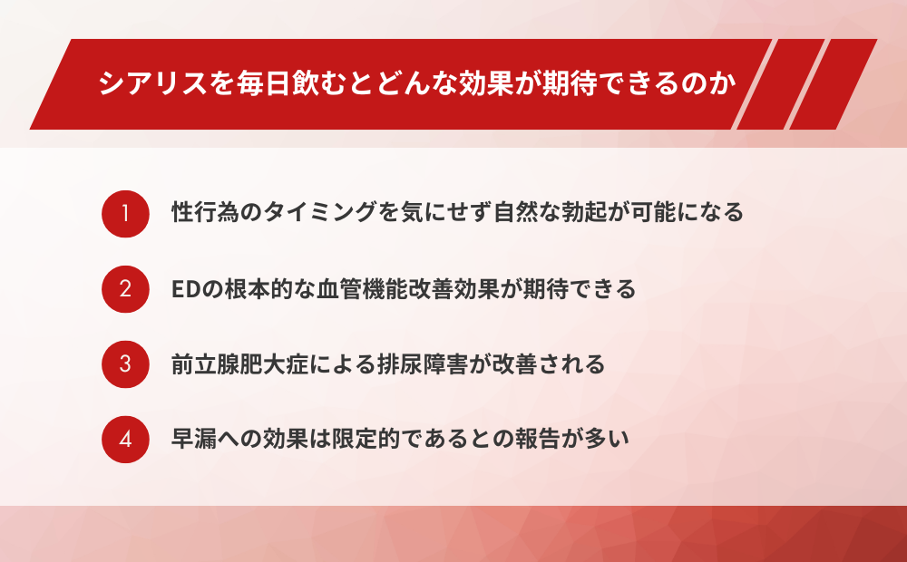 シアリスを毎日飲むとどんな効果が期待できるのか