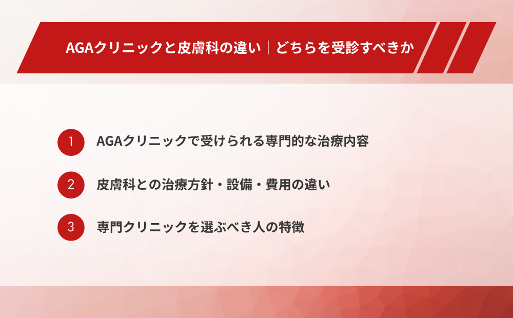 AGAクリニックと皮膚科の違い|どちらを受診すべきか