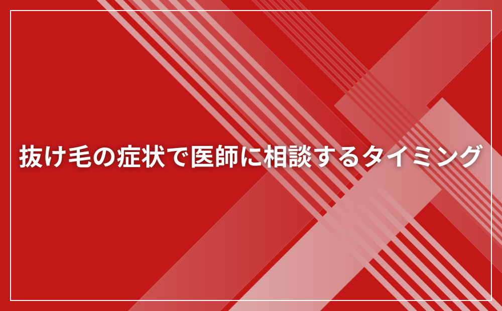 自己チェックで「もしかしたら異常かも」と感じた場合、適切なタイミングで医療機関を受診することが重要です。疾患が原因の抜け毛は放置すると進行する可能性があるため、早めの判断が大切です。