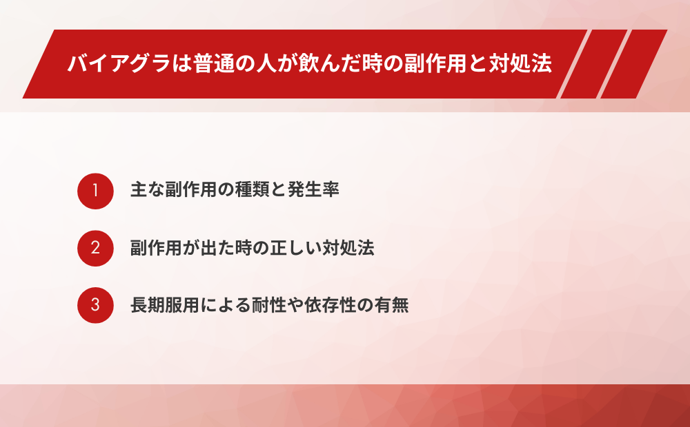 バイアグラは普通の人が飲んだ時の副作用と対処法