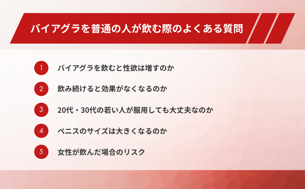 バイアグラを普通の人が飲む際のよくある質問